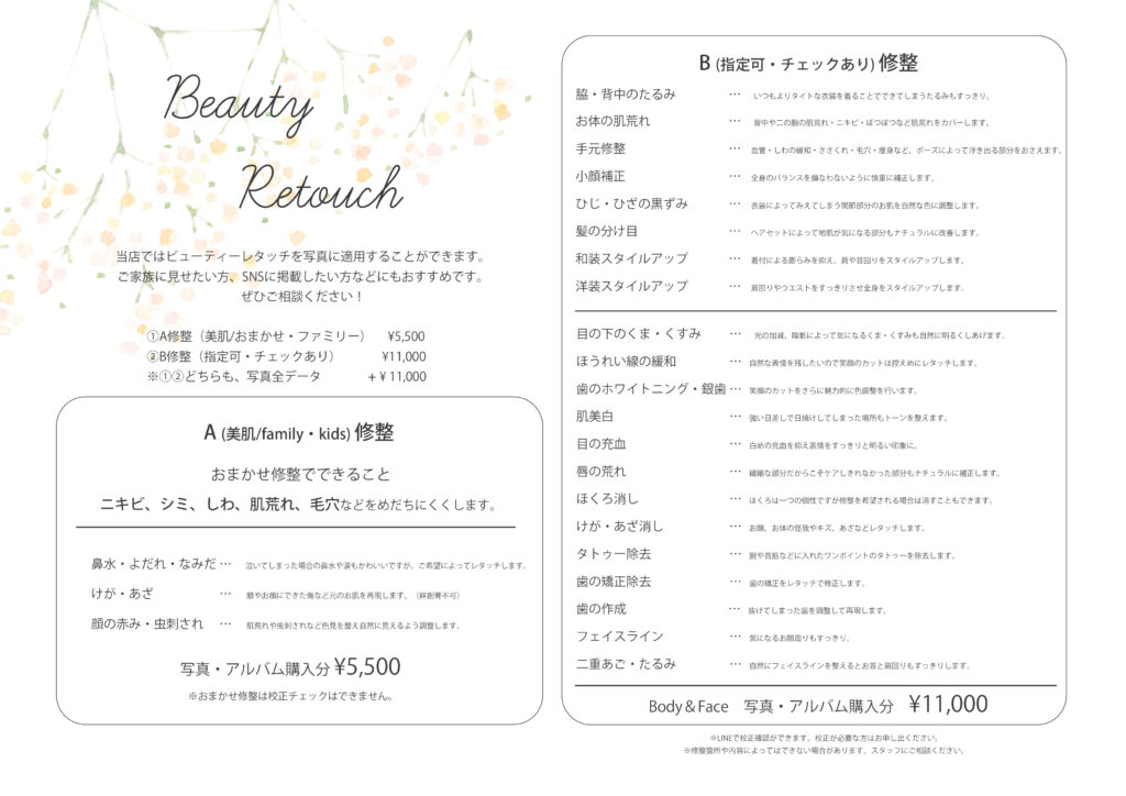 レタッチ料金のお知らせ
