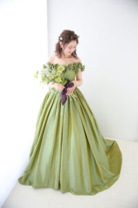 緑色は心身をリフレッシュする効果があるとも言われており、結婚式のような特別な日に花嫁に自信を与えてくれる色だそうです…♡