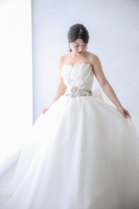 「プリンセスライン」のドレスは、上半身をフィットさせたデザインで、ウエストからスカートが大きくふんわりと広がるシルエットが特徴です!