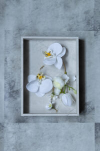 ドレスや着物だけでなく、顔回りもおしゃれに。耳元からぶら下がり揺れる大きなお花。つけているだけで前撮り時もテンションが上がるかわいさ!