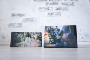 壁に掛けて飾ったり、そのまま机などに立てかけて飾ったりもできるフレームです。