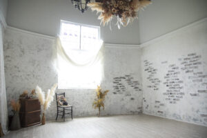 また待合室としても利用している大窓のあるお部屋や、ドレスのお部屋の前、