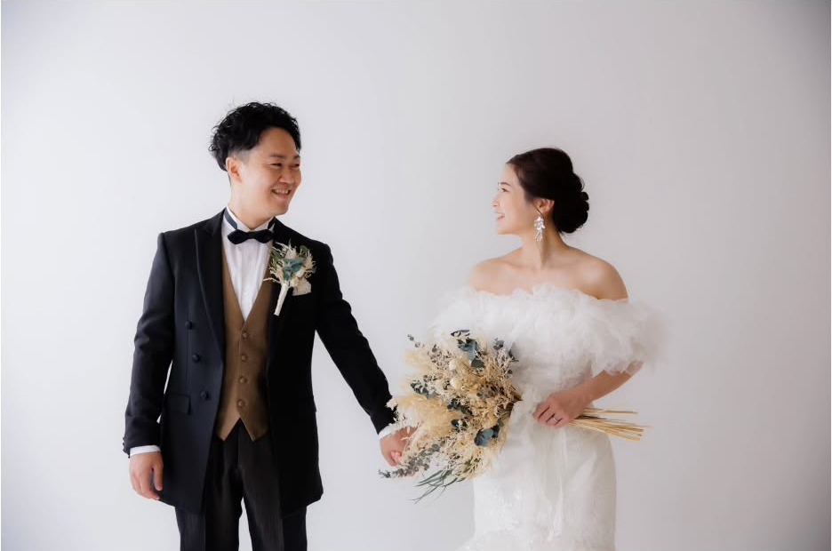 - A洋装スタジオ撮影プランの場合、ウェディングフォトの撮影時間は1時間程度となります。